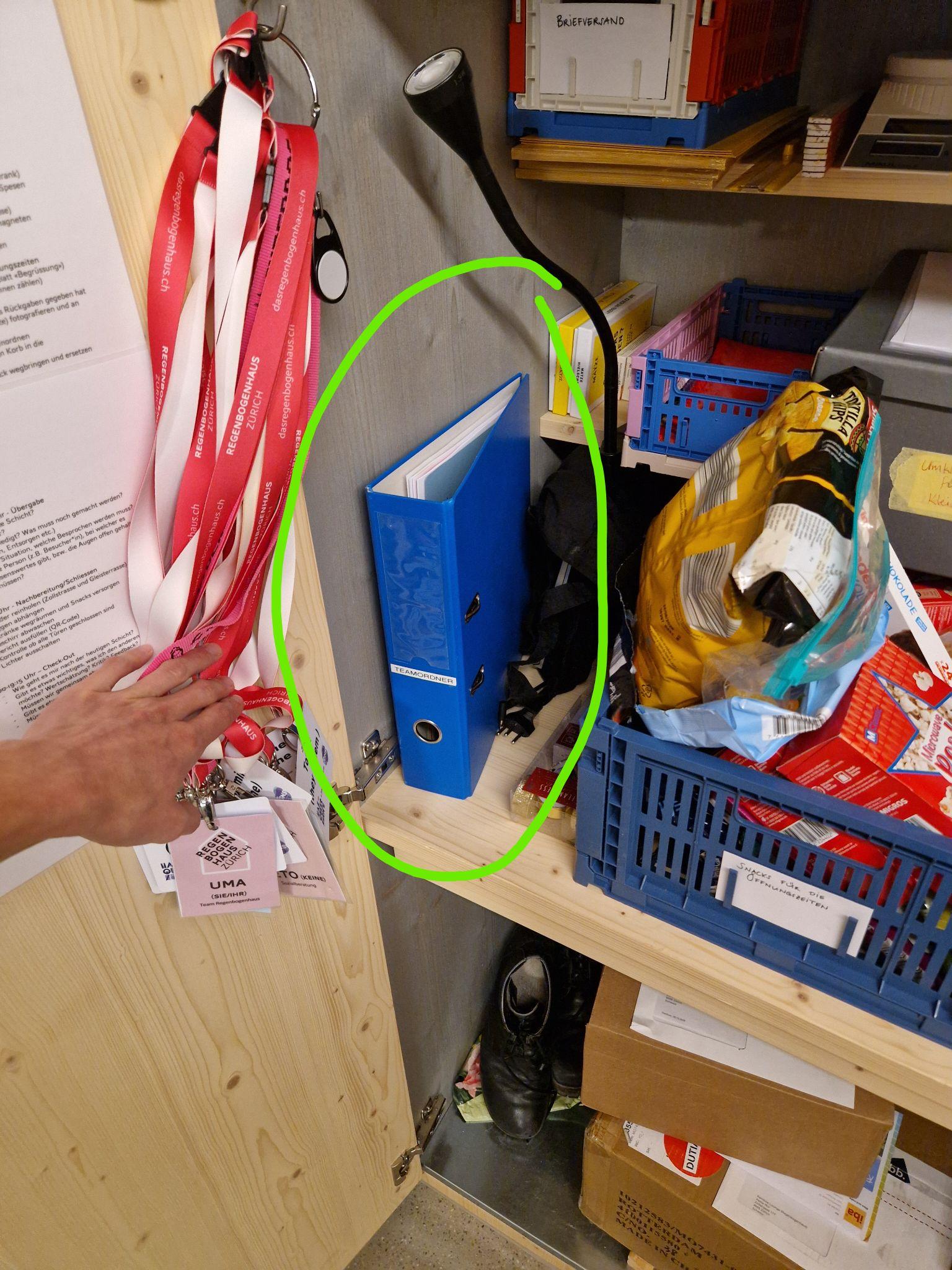 - Team folder: The blue team folder contains the most important documents and emergency numbers. It is located in the team cupboard.